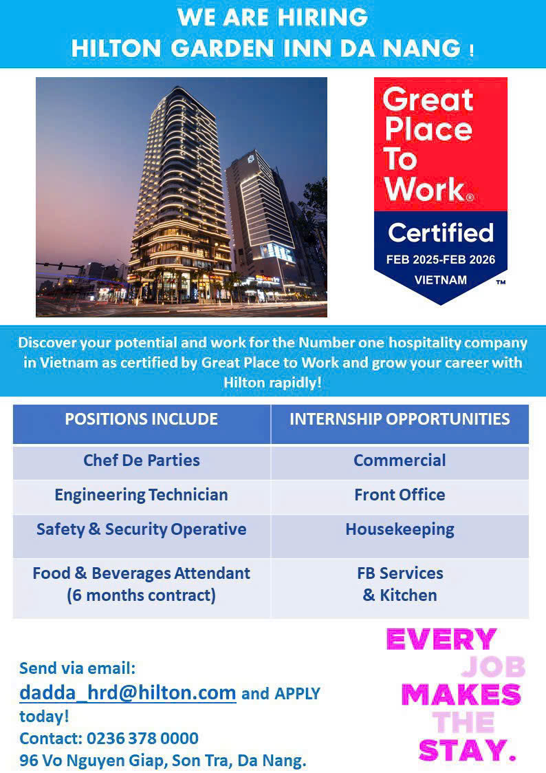 💼 Hilton Garden Inn Đà Nẵng – Every Job Makes The Stay!